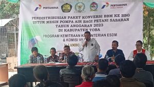 Sumutcyber.com, Toba – Sebanyak 200 petani di Kabupaten Toba mendapat bantuan mesin pompa air melalui paket konversi Bahan Bakar Minyak (BBM) ke Bahan Bakar Gas (BBG) Program Kemitraan Kementerian ESDM dan Komisi VII DPR RI tahun anggaran 2023.