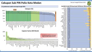 Sumutcyber.com, Medan – Sampai 6 Maret 2023 malam, sebanyak 21 dari 41 puskesmas di Medan telah mencapai target 95 persen cakupan Sub PIN Polio di wilayah kerja masing-masing.