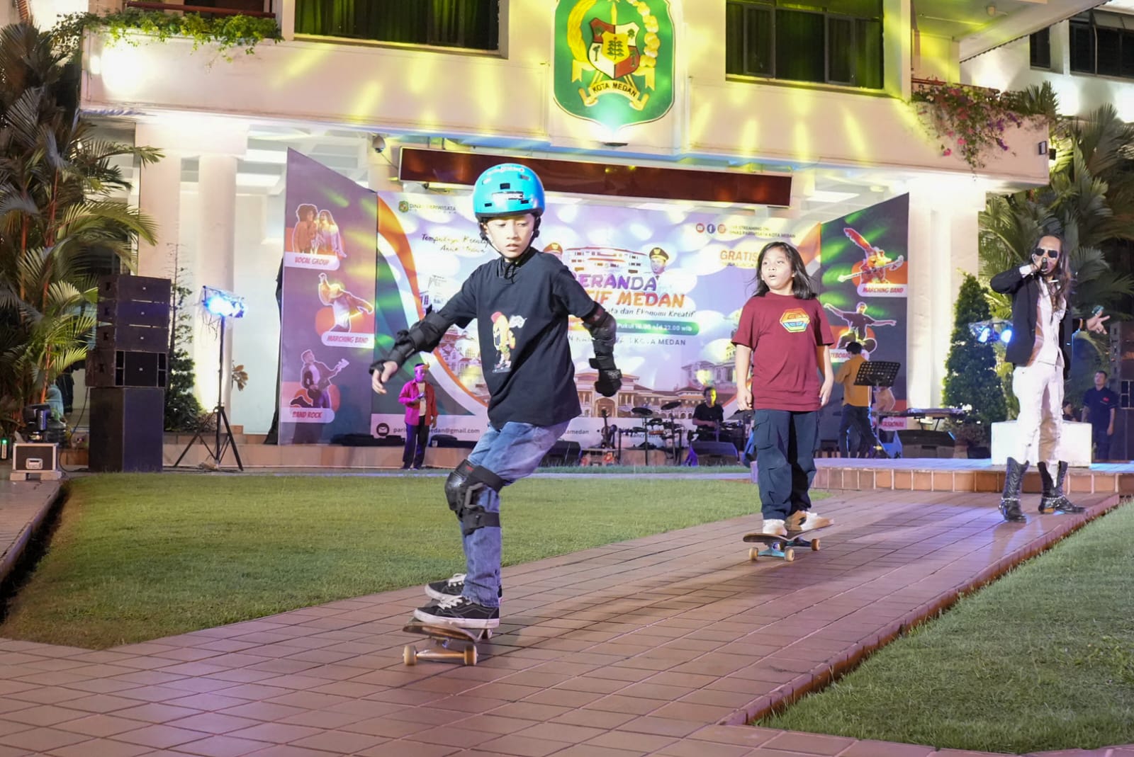 Selain aksi skateboard, panggung Beranda Kreatif tadi malam juga disemarakkan oleh pertunjukan musik dan tari. Tidak hanya modern, tari dan musik tradisional serta perpaduan antara keduanya juga ditampilkan. Beberapa penampil malam itu antara lain band D-Not 7, XXL Dancer, dan penari-penari binaan Dinas Pariwisata. (SC03)