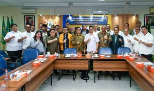 Medan – Penjabat (Pj) Sekretaris Daerah Provinsi (Sekdaprov) Sumatera Utara (Sumut), Sulaiman Harahap menerima kunjungan kerja (Kunker) tim Badan Legislasi (Baleg) DPR RI di Kantor Kamar Dagang dan Industri (KADIN) Sumut, Jalan Sekip Baru, Medan, Kamis (18/12/2025) siang.