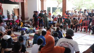 Dalam peninjauan di pos pengungsian Banjar Sedana Mertha Ubung, Suharyanto berdialog dengan warga terdampak dan memastikan bantuan kebutuhan dasar tersedia.