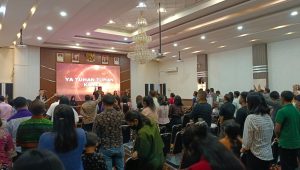 Sumutcyber.com, Medan – Jemaat Gereja Elim Kristen Indonesia (GEKI) melaksanakan ibadah di ruangan kantor Wali Kota Medan, Minggu (11/6). Ibadah ini dilakukan oleh Jemaat GEKI setelah Wali Kota Medan Bobby Nasution mempersilahkan mereka untuk beribadah di dalam kantor ,tidak lagi beribadah diluar halaman kantor Wali Kota seperti sebelumnya.