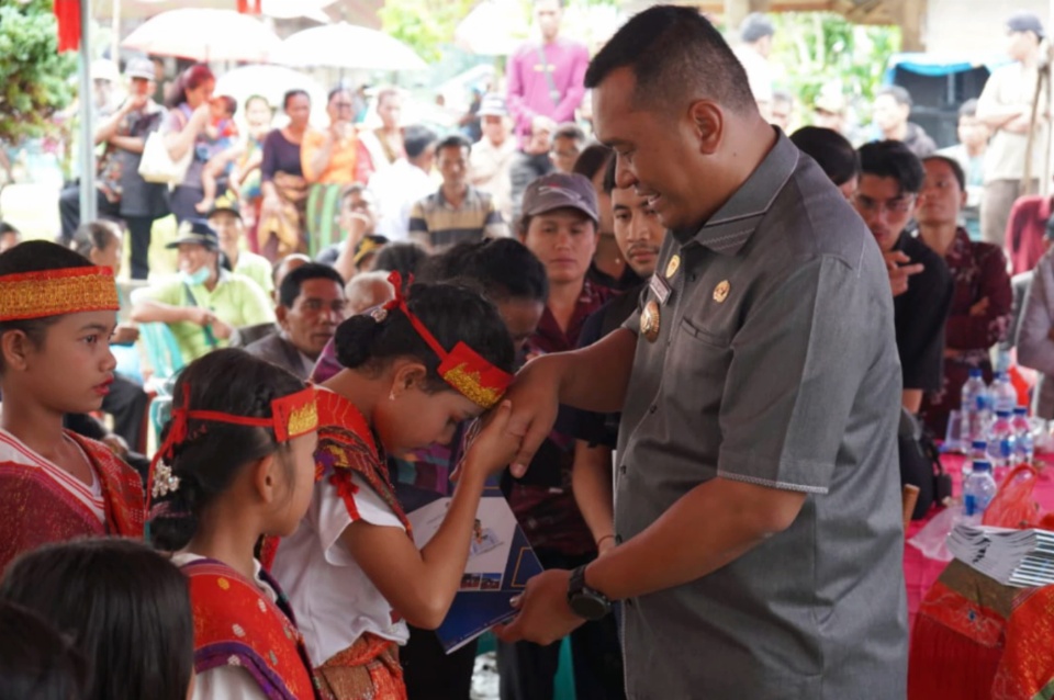 Dalam rangkaian program BuKa Desa tersebut, Bupati dan Wakil Bupati Toba juga menyerahkan cenderamata kepada siswa sekolah dasar berprestasi serta memberikan Kartu Identitas Anak (KIA). Sementara itu, Ketua TP PKK Kabupaten Toba menyerahkan kacamata baca kepada para lanjut usia. (SC-JT)