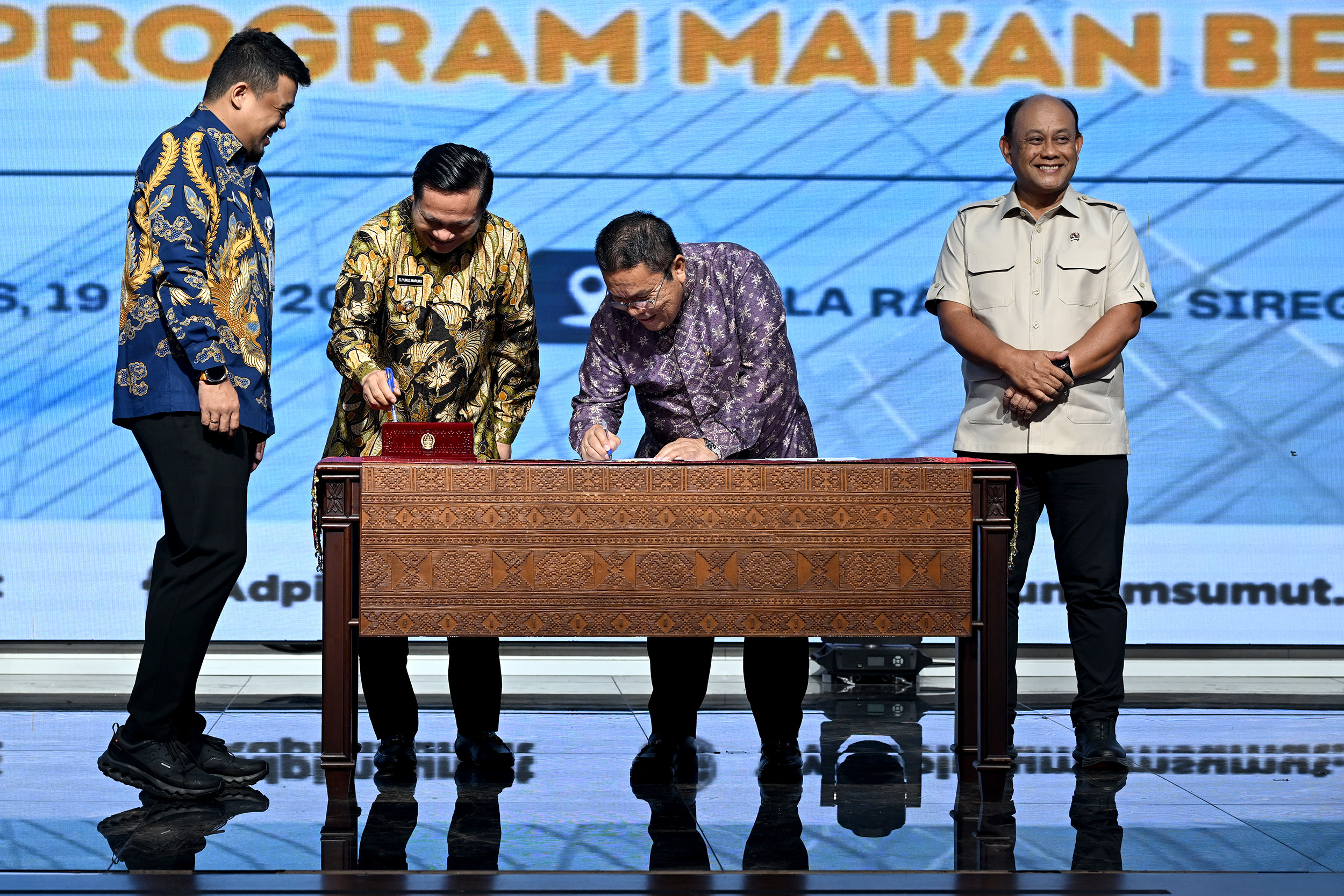 Hal itu ia sampaikan pada kegiatan Penandatanganan Nota Kesepahaman antara Badan Gizi Nasional (BGN) dengan 33 Pemerintah Kabupaten/Kota se-Sumut, tentang Sinergi dan Kerja Sama dalam Kegiatan Program MBG, di Aula Raja Inal Siregar, Kantor Gubernur Sumut, Jalan Diponegoro 30 Medan, Kamis (19/6/2025).