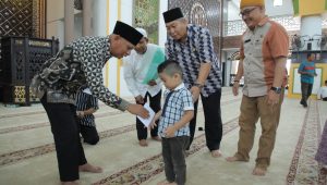 Dikegiatan ini juga Keluarga H. Rahmat Hidayat Siregar Kepala Dinas Lingkungan Hidup Kabupaten Asahan memberikan bantuan kepada para Santri Tahfiz Qur’an Masjid Agung H. Achmad Bakrie Kisaran berupa pakaian. (SC-Denny)