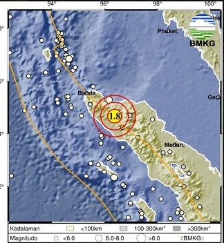 Medan – Badan Meteorologi, Klimatologi, dan Geofisika (BMKG) mencatat tiga kejadian gempa bumi berkekuatan kecil yang terjadi pada Jumat, 26 Desember 2025, di wilayah Aceh dan Sumatera Utara.