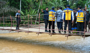 Selanjutnya, Gubernur bersama rombongan meninjau Kecamatan Sorkam untuk melihat langsung kondisi tanggul sungai yang rusak serta bendungan yang terdampak banjir bandang pada November lalu.