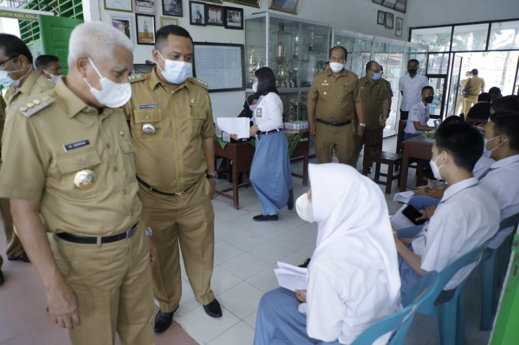 Sumutcyber.com, Kisaran – Bupati Asahan H. Surya meninjau pelaksanaan vaksinasi Covid-19 di beberapa SMA Negeri Kisaran yakni SMA Negeri 2 Kisaran, SMA Negeri 4 Kisaran dan SMK Negeri 2 Kisaran, Senin (25/10/2021)