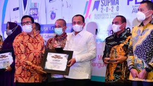 Sumutcyber.com, Medan – Bupati Batubara H. Zahir bersama Gubsu Edy Rahmayadi dan Wagubsu Musa Rajekshah menerima Penghargaan Sahabat Pers tahun 2020 dari Serikat Perusahaan Pers ( SPS ) yang diserahkan oleh Wakil Ketua Dewan Pers Pusat Hendry CH Bangun dalam acara malam penganugrahan SPS Minggu malam (29/11/2020) di Hotel Santika Medan.