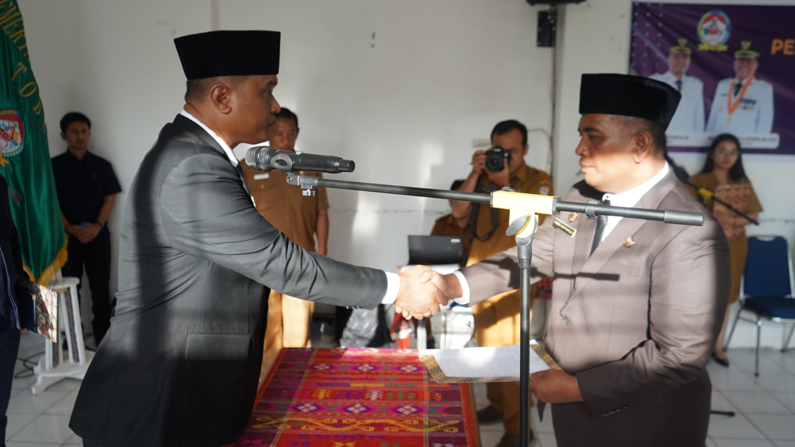 Usai pelantikan, acara dilanjutkan dengan serah terima jabatan dari pejabat lama, Drs. Augus Sitorus, kepada Penjabat Sekda yang baru, termasuk penyerahan aset secara simbolis.