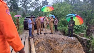 Sumutcyber.com, Pakpak Bharat – Bupati Pakpak Bharat Franc Bernhard Tumanggor didampingi Kepala Pelaksana BPBD Pakpak Bharat Augusman Harapan Padang, meninjau jembatan putus di Dusun Lae Mrempat, Desa Malum, Kecamatan Sitellu Tali Urang (STTU) Jehe, Kabupaten Pakpak Bharat, Selasa (05/03/2024).