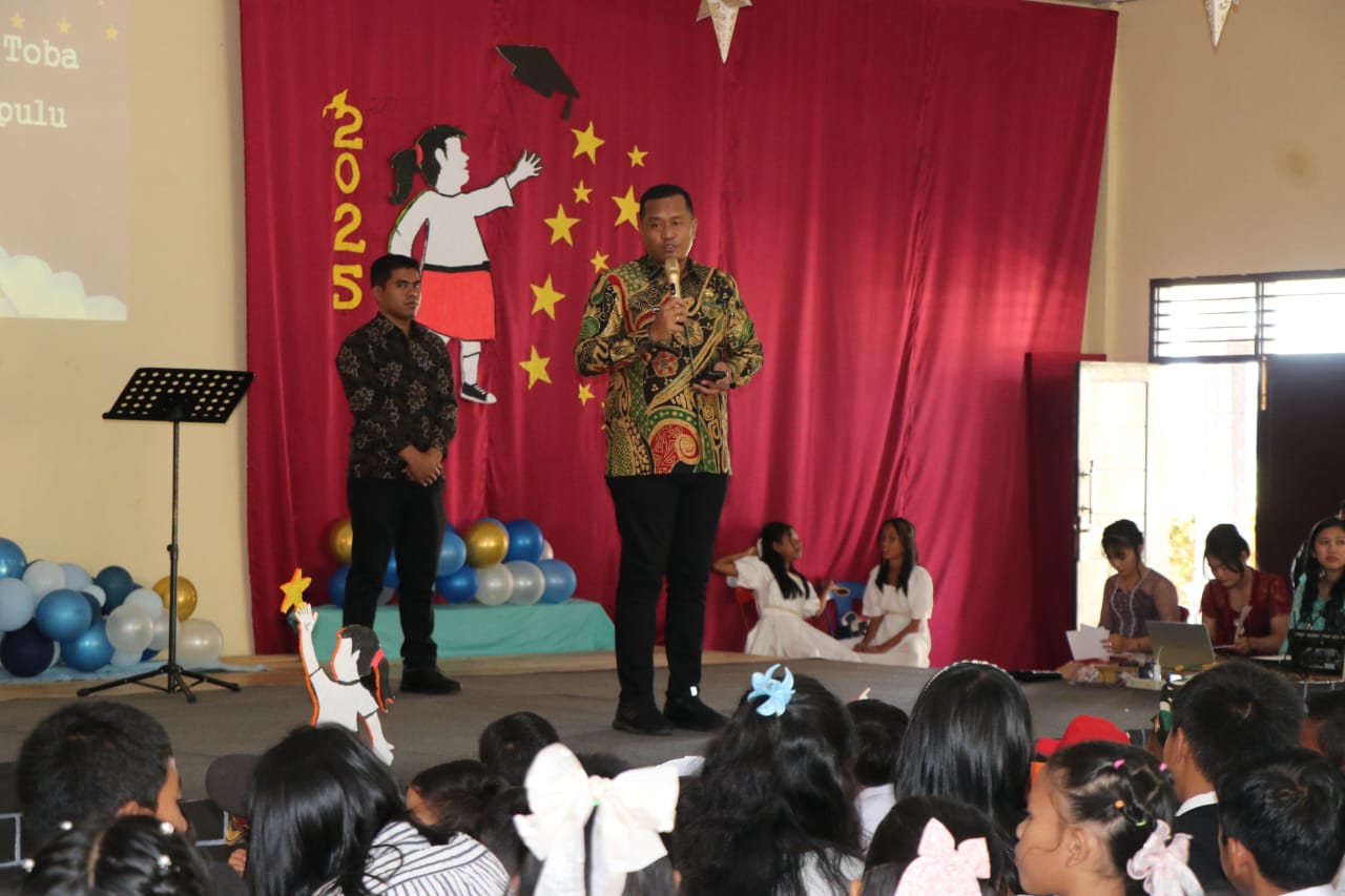 Pesan ini disampaikan Bupati Effendi saat menghadiri acara pelepasan siswa TK B dan Kelas VI Yayasan Rumah Harapan Tobasa, di Auditorium Yayasan Rumah Harapan Tobasa, Jalan Gereja, Desa Silamosik II, Kecamatan Bonatua Lunasi, Kamis (12/6/2025). Ia hadir bersama Bunda PAUD Kabupaten Toba, Ny. Astita Effendi Napitupulu.