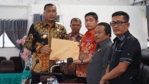 Dalam kesempatan itu, Bupati didampingi Wakil Bupati Audi Murphy O. Sitorus menyerahkan Nota Pengantar KUA-PPAS kepada pimpinan DPRD Toba, yakni Ketua Franshendrik Tambunan, Wakil Ketua Tomson Manurung, dan Wakil Ketua Henry Tambunan. (SC-JT)