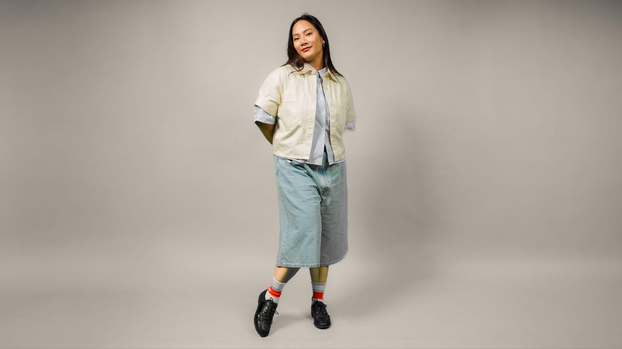 Pada tampilan Light Layering, Active Ease, Tara Basro memadukan Kemeja Boxy Denim, Kemeja Oxford Boxy lengan pendek, dan Celana Pendek Jeans (Jorts) biru muda untuk menghadirkan gaya kasual yang terasa playful namun tetap polished. Kombinasi siluet boxy, palet warna yang ringan, dan layering yang tidak membatasi gerak ini merefleksikan perjalanan Tara dalam menemukan cara berekspresi yang lebih jujur dan personal bahwa kebebasan tidak selalu harus tampil dramatis, tetapi bisa hadir dalam pilihan yang nyaman, praktis, dan relevan dengan ritme keseharian. Tampilan ini mencerminkan semangat Kartini masa kini yang hidup dalam keputusan-keputusan kecil setiap hari, termasuk keberanian untuk memilih gaya yang mendukung mobilitas, rasa percaya diri, dan kebebasan menjadi diri sendiri.