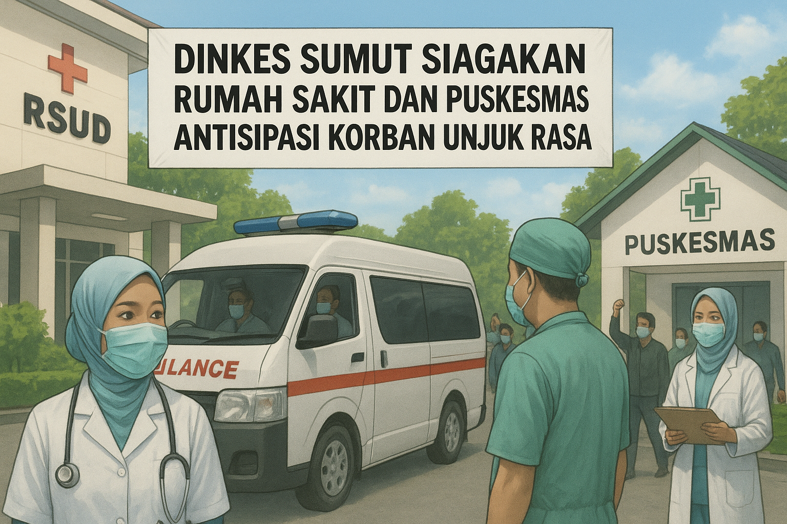 Medan – Dinas Kesehatan Provinsi Sumatera Utara (Dinkes Sumut) menyiagakan layanan kesehatan di rumah sakit, puskesmas, hingga fasilitas kesehatan tingkat pertama (FKTP). Langkah ini dilakukan untuk mengantisipasi lonjakan pasien akibat aksi unjuk rasa yang berlangsung di sejumlah titik dalam beberapa hari terakhir.