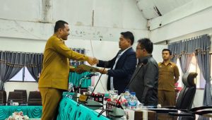 Toba – Bupati Kabupaten Toba, Effendi Sintong Panangian Napitupulu membacakan Nota Pengantar Laporan Keterangan Pertanggung-jawaban Tahun Anggaran 2024 pada rapat paripurna DPRD Toba yang digelar pada Senin (14/4/2025).