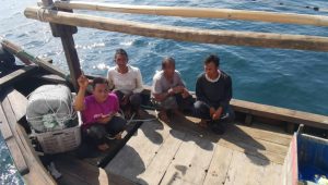 Empat orang nelayan pancing rawe ukuran 5 GT itu adalah Tekong Nurhuda (32) bersama tiga anak buah kapal (ABK) yakni Mujiono (40) Idris (38) dan Yudi Yustira (21).