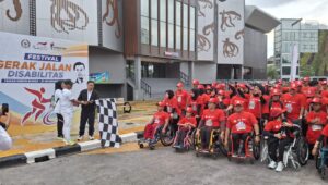 Medan – Hujan lebat mengguyur Kota Medan sejak dini hari. Jam di handphone masih menunjukkan pukul 04.00 WIB. Namun satu persatu peserta dengan kursi roda dan alat bantu disabilitas lainnya sudah mulai meramaikan lokasi acara yang baru akan dimulai pukul 06.00 WIB.
