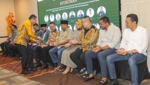Medan – Fakultas Ilmu Sosial dan Politik (FISIP) Universitas Sumatera Utara (USU) menggelar halalbihalal sekaligus tepung tawar alumni yang terpilih sebagai anggota legislatif, DPR RI, DPD RI, DPRD Provinsi dan Kabupaten/Kota di Aula Serbaguna FISIP USU, Medan, Kamis (2/5/2024).