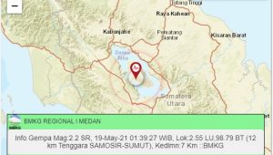 Sumutcyber.com, Samosir – Gempa bumi kembali mengguncang Kab. Samosir, Rabu (19/5/2021). Sejak 18 Februari hingga 19 Mei pukul 9.00 WIB, tercatat 184 kali kejadian gempa bumi di kawasan sekitar Danau Toba tersebut.