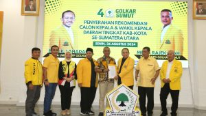 Surat rekomendasi ini diserahkan oleh Wakil Ketua Koordinator Bidang Pemenangan Pemilu DPD Golkar Sumut, Irham Buana Nasution, didampingi jajaran pengurus DPD Partai Golkar Sumut, termasuk Syamsul Qomar, Dhody Thahir, serta tim penjaringan calon kepala daerah Milie Desky dan Dedi Dermawan Milaya.