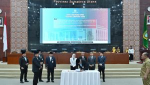 Medan – Gubernur Sumatera Utara (Sumut) Muhammad Bobby Afif Nasution menandatangani Nota Kesepakatan Kebijakan Umum Anggaran – Prioritas Plafon Anggaran Sementara (KUA-PPAS) Perubahan APBD Provinsi Tahun 2025 bersama Dewan Perwakilan Rakyat Daerah (DPRD) Sumut. Hal tersebut berlangsung dalam rapat paripurna dewan, di Gedung DPRD Sumut, Jalan Imam Bonjol Medan, Selasa (16/9/2025).