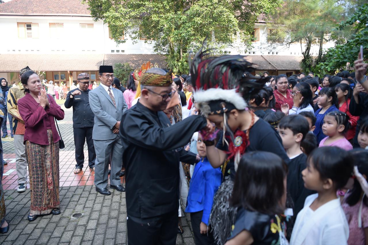 “Usaha untuk mewujudkan tujuan dan fungsi pendidikan tersebut, tidak hanya menjadi tugas dan tanggung jawab pemerintah saja, tetapi juga seluruh elemen masyarakat. Kami memerlukan partisipasi semesta untuk mewujudkan Pendidikan Bermutu untuk Semua,” tutur Mendikdasmen yang pada pagi itu bertindak sebagai pembina upacara dan mengenakan pakaian adat Pangsi dari Jawa Barat.