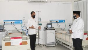 Presiden pun menyampaikan apresiasi kepada jajaran Kementerian Kesehatan (Kemenkes) dan Kementerian Pekerjaan Umum dan Perumahan Rakyat (PUPR) yang telah berhasil mempersiapkan RS ini dalam waktu singkat.