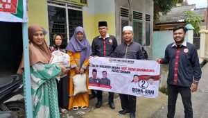 Medan – Dewan Pimpinan Cabang (DPC) Himpunan Masyarakat Tabagsel Indonesia (HMTI) Kota Medan bersama Calon Wali Kota Medan, Prof Ridha Dharmajaya membagikan puluhan karung beras kepada warga kurang mampu di kawasan Jalan Bromo Kecamatan Medan Denai dan Jalan Letda Sudjono Kecamatan Medan Tembung, Jumat (8/11/2024).