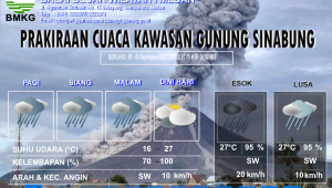 Siang/Sore Hari: Berawan dan berpotensi Hujan Sedang – Lebat terjadi di wilayah Langkat, Medan, Pakpak Bharat, Humbahas, Samosir, Karo, Dairi, Deli Serdang, Simalungun, P. Siantar, Kep. Nias, Madina, Labuhanbatu, Labuhanbatu Utara, dan Sekitarnya.