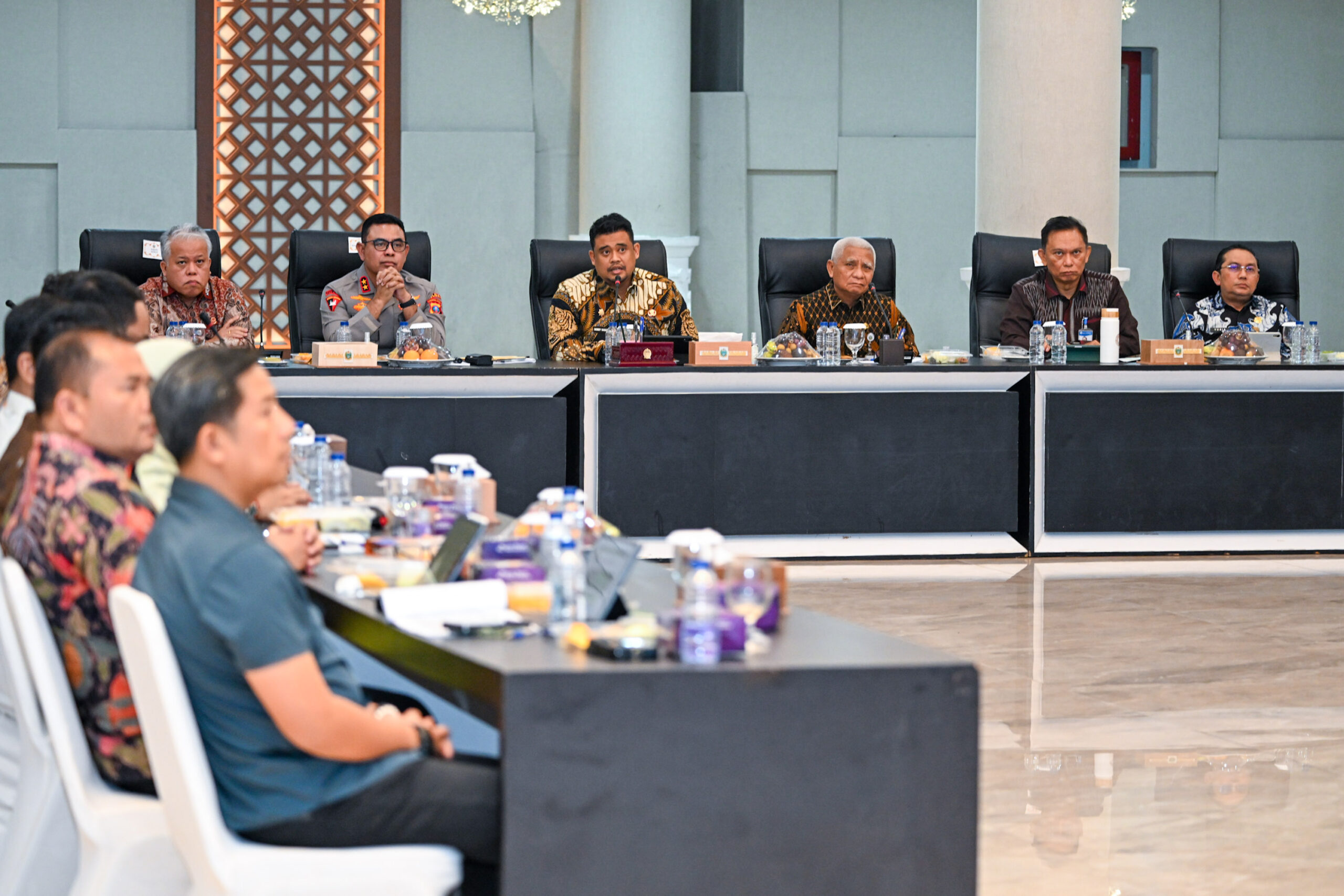 Hadir dalam high level meeting tersebut Wakil Gubernur Sumut Surya, Kapolda Sumut Irjen Pol Whisnu Hermawan Februanto, Kajati Sumut Harli Siregar, dan Wakil Ketua DPRD Sumut Salman Alfarisi. Turut hadir Pj Sekdaprov Sumut Sulaiman Harahap, seluruh kepala daerah kabupaten/kota se-Sumut, serta OPD terkait Pemprov Sumut dan kabupaten/kota. (SC02)