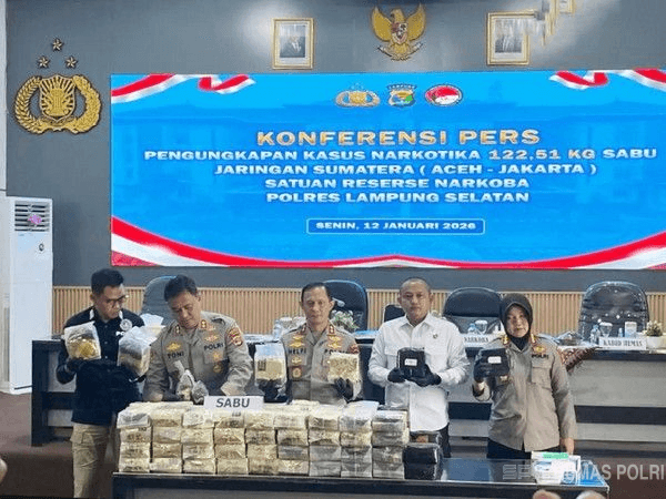 “Jika diasumsikan harga satu gram sabu sekitar Rp1 juta, maka nilai barang bukti yang kita sita mencapai Rp122 miliar lebih. Ini salah satu pengungkapan terbesar di akhir tahun,” tegasnya.