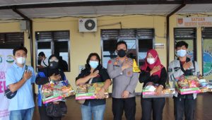 Penyerahan paket lebaran diserahkan secara simbolis kepada perwakilan media, di depan ruang Sat Narkoba Polres Pematangsiantar, Jumat (7/5/2021).
