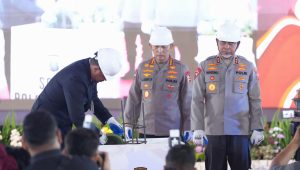 Medan – Kapolri Jenderal Polisi Listyo Sigit Prabowo melakukan groundbreaking atau peletakan batu pertama pembangunan 29 dapur Satuan Pelayanan Pemenuhan Gizi (SPPG) jajaran Polda Sumut, di Mapolda Sumut Jalan SM Raja Medan, Jumat (11/7/2025). SPPG ini untuk mendukung pelaksanaan program Makan Gizi Gratis (MBG) dari pemerintah pusat.