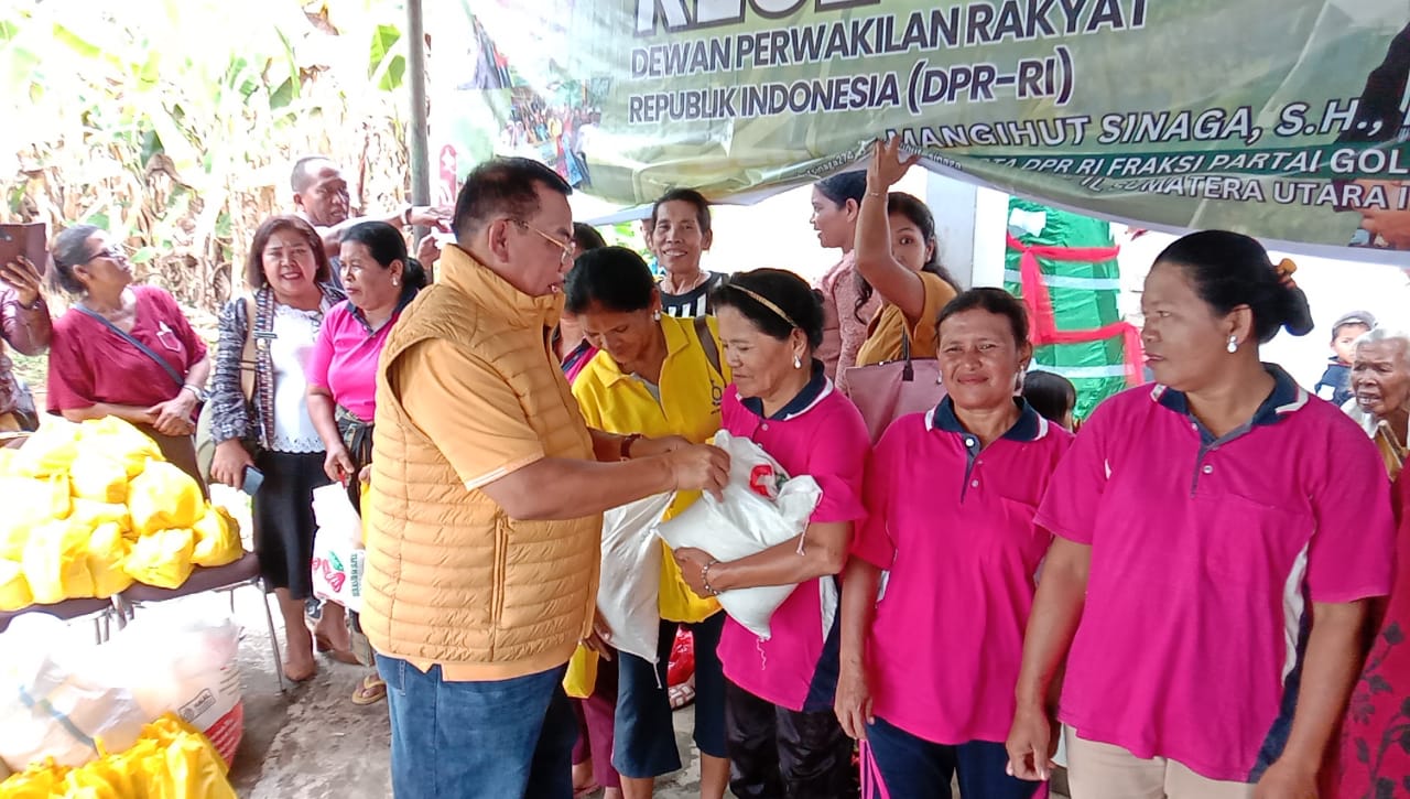 Sebagai bentuk kepedulian sosial, pada kegiatan reses tersebut Mangihut Sinaga turut menyerahkan bantuan sembako kepada masyarakat berupa beras, minyak makan, dan gula. Bantuan ini disambut baik oleh warga dan dinilai membantu memenuhi kebutuhan sehari-hari.