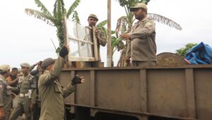 Turut hadir dalam penertiban sejumlah Pimpinan Perangkat Daerah diantaranya Kasat Pol PP Muhammad Yunus, Kadis Sosial Khoiruddin Rangkuti, Plt Kadis Ketapang Pertanian Perikanan, Ahmad Untung Lubis dan Plt Kadis SDABMBK Gibson Panjaitan serta Camat Medan Tuntungan. (SC03)
