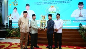 Medan – Kota Medan keluar sebagai juara umum diajang Seleksi Tilawatil Qur’an dan Hadits (STQH) ke XIX tingkat Provinsi Sumut. Hal tersebut ditandai dengan penyerahan piala oleh Wakil Gubernur (Wagub) Sumatera Utara (Sumut) Surya kepada Kafilah Kota Medan sekaligus menjadi tanda berakhirnya penyelenggaraan STQH ke XIX tingkat Provinsi Sumut, Senin (16/6/2025) malam.