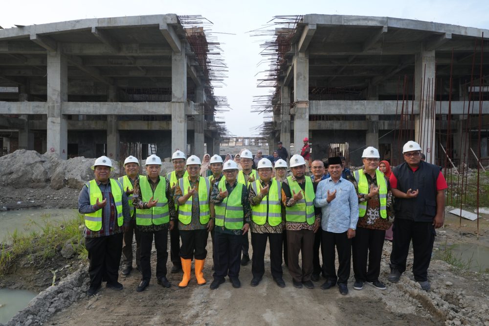 Kunjungan dilanjutkan dengan peninjauan progres pembangunan Auditorium Berkemajuan dan Sport Hall Walidah di Kampus Terpadu UMSU, Kabupaten Deli Serdang.