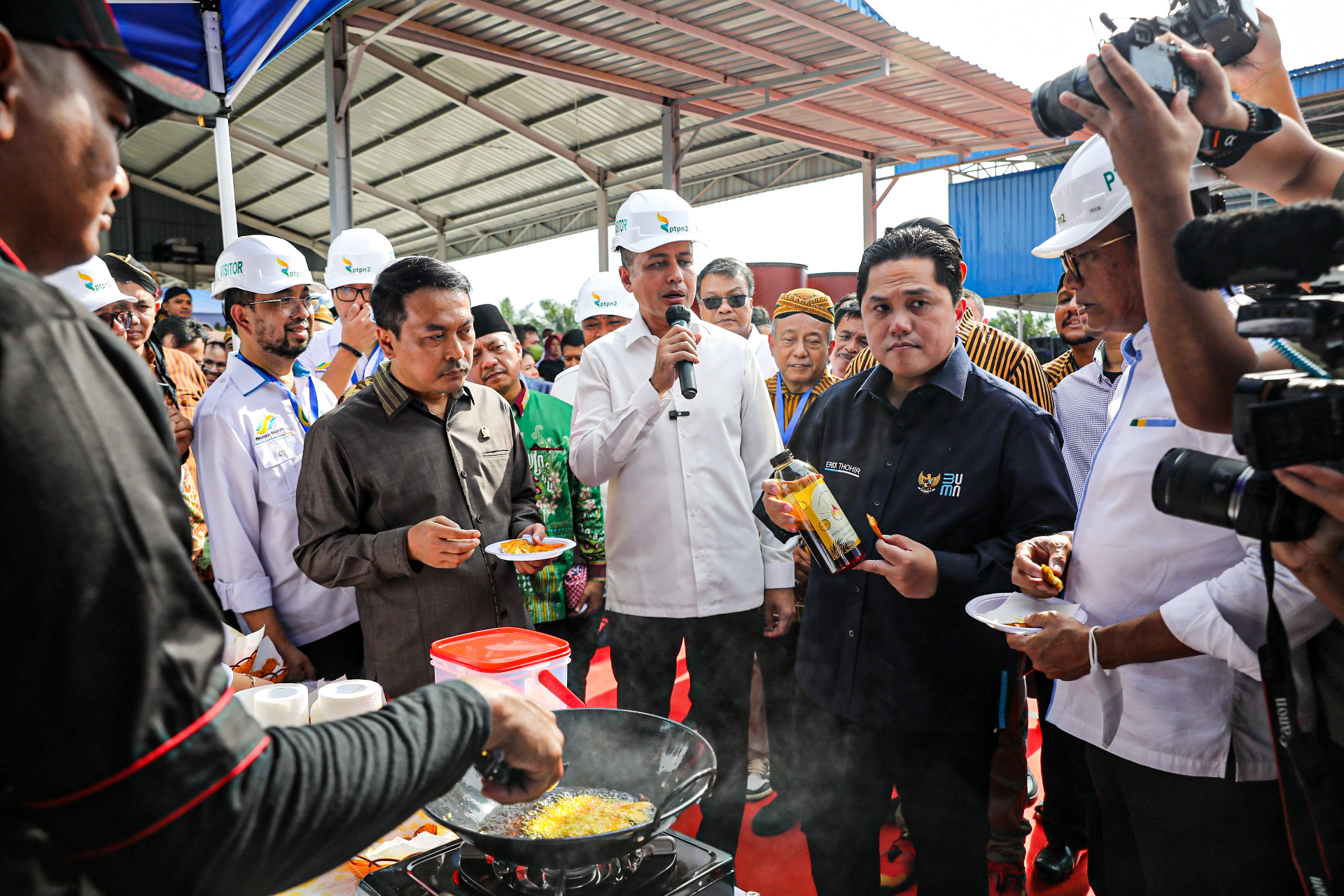 Sumutcyber.com, Deliserdang – Menteri BUMN Erick Thohir didampingi Wagub Sumut Musa Rajekshah meresmikan Pabrik Minyak Makan Merah PTPN di Pagar Merbau, Kabupaten Deliserdang, Jumat (6/1/2023).
