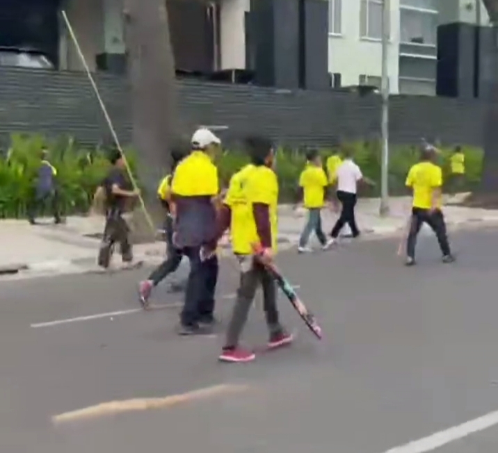 Puluhan orang yang mengenakan kaos Partai Golkar terlihat saling kejar di sekitar lokasi. Mereka membawa kayu dan nyaris terlibat bentrok dengan kelompok lain. Aparat keamanan kembali turun tangan untuk mencegah bentrokan terbuka.