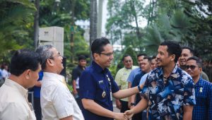 Setelah Apel, Wali Kota Medan melakukan silaturahmi saling bersalaman dengan seluruh jajaran Pemko Medan. (SC03)