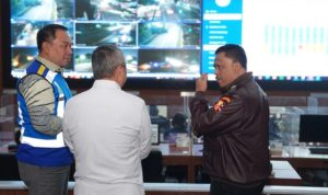 Jakarta – Kakorlantas Polri Irjen Pol Agus Suryonugroho bersama Menteri Perhubungan Dudy Purwagandhi dan Dirut PT. Jasa Marga Rivan A. Purwantono melakukan pemantauan kondisi arus lalu lintas di sejumlah ruas jalan tol melalui Ruang Planar Lt.II Gedung NTMC Korlantas Polri, Selasa (23/12/2025).