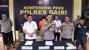 Kapolres Dairi, AKBP Otniel Siahaan, S.I.K., M.I.K dalam konferensi pers mengatakan, tersangka yang diamankan berinisial DL (22) warga Desa Pengambatan Kecamatan Merek Kabupaten Tanah Karo.