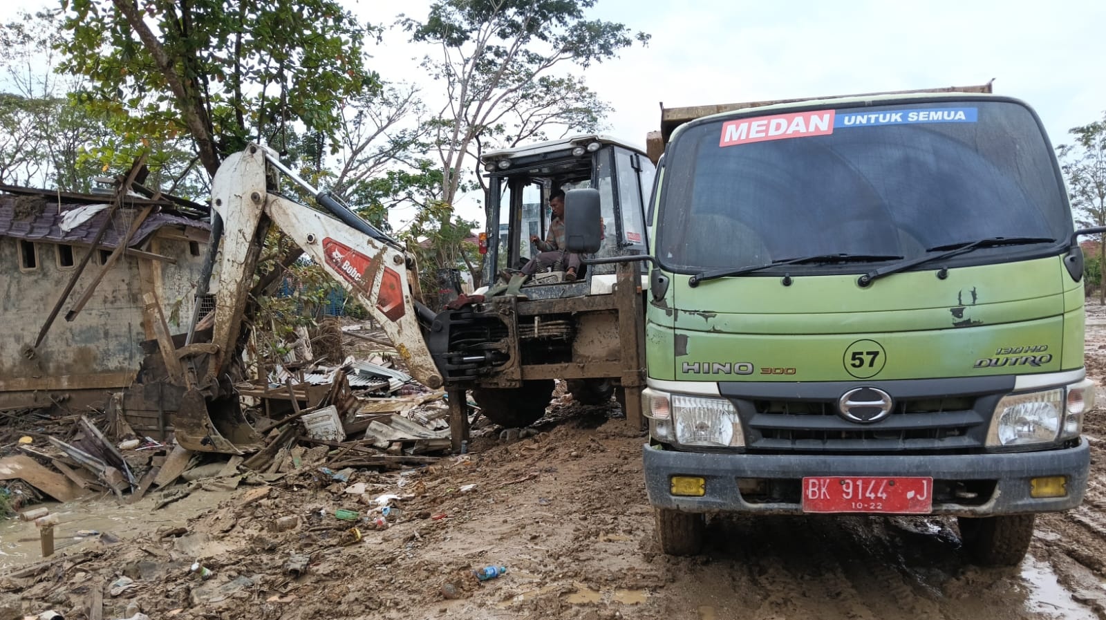 “Tahap awal kita mengirimkan armada satu unit motor grader, dua unit backhoe loader, empat unit dump trck, dan tiga unit trado yang lengkap beserta petugas operator dan supir”, jelas Gibson Panjaitan.