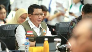 Jakarta – Kepala Badan Nasional Penanggulangan Bencana (BNPB) Letjen TNI Dr. Suharyanto, S. Sos., M.M., memberikan pemaparan di Kantor Kemenko Bidang Infrastruktur dan Pembangunan Kewilayahan, Jakarta, Selasa (14/1/2025).