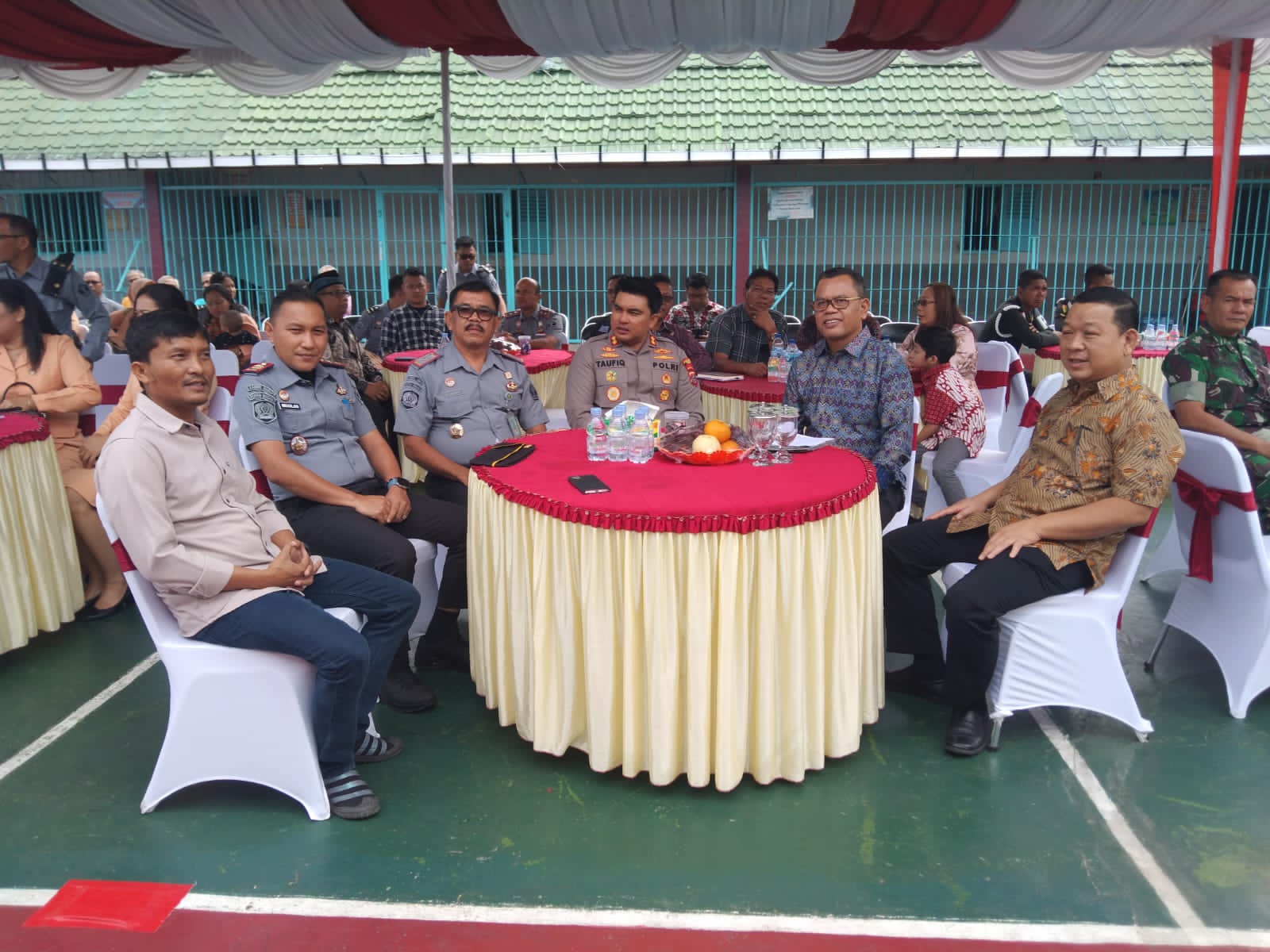 Pisah sambut Karutan Kelas IIB Balige, dihadiri sejumlah undangan diantaranya Bupati Toba Poltak Sitorus, Wakil Bupati Toba Tonny M.Simanjuntak, Kapolres Toba AKBP Taufiq Hidayat Thayeb, Kajari Toba Nanang Dwi Prihadi SH MH, Danramil 17/Balige Kapten B. Siboro, Kapolsek Balige IPTU Slamet Pasaribu, Mewakili Danki 125 Balige Lettu Agus Fajri, tokoh masyarakat dan adat. (SC-JT)