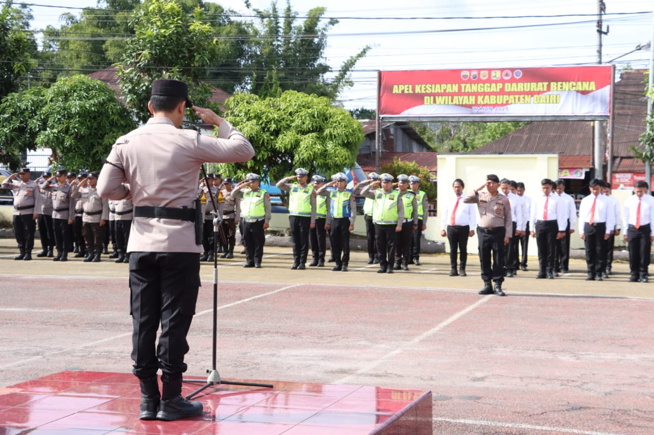 Dairi – Polres Dairi menggelar Apel Kesiapan Tanggap Darurat Bencana sebagai langkah antisipasi menghadapi potensi bencana alam di wilayah Kabupaten Dairi di halaman Mako Polres Dairi, Rabu (5/11/2025).