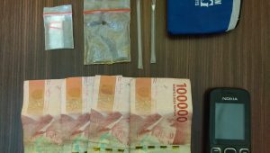 Kemudian, 1 buah plastik transparan ukuran kecil didalamnya berisi 2 buah plastik transparan ukuran kecil diduga berisi Narkotika jenis sabu, buah plastik transparan ukuran sedang didalamnya berisi 4 buah plastik transparan ukuran kecil kosong, 2 buah plastik ukuran kecil diduga berisi Narkotika jenis sabu, 2 buah pipet yang telah dirakit menyerupai sekop.