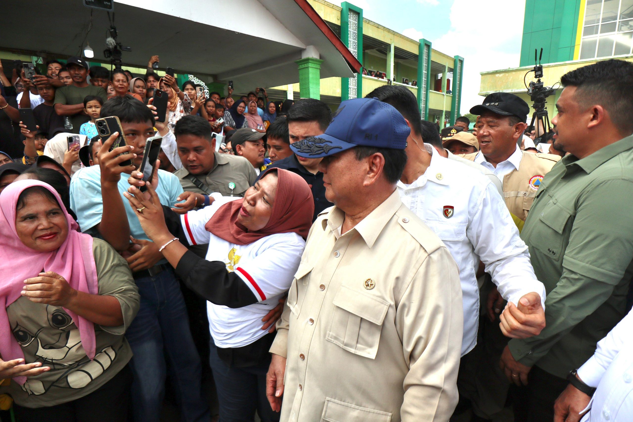 “Segala kekurangan yang kita temukan akan kita atasi, khususnya untuk pemenuhan kebutuhan air bersih,” ungkap Prabowo saat meninjau lokasi pengungsian warga terdampak banjir di MTs 1 Langkat, Tanjung Pura, Kabupaten Langkat, Sumatra Utara, Sabtu (13/12/2025). Presiden tiba di lokasi pada pukul 12.00 WIB, disambut Kepala Badan Nasional Penanggulangan Bencana (BNPB) Letjen TNI Dr. Suharyanto dan Menteri Pekerjaan Umum, Dody Hanggodo.