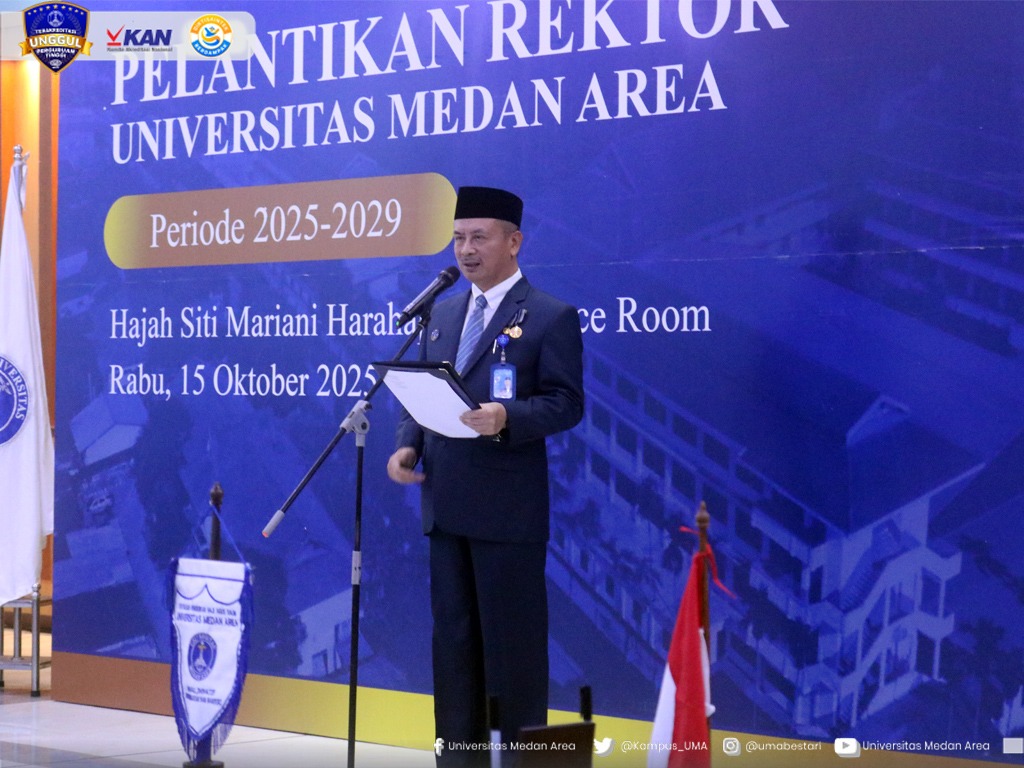 Medan – Prof. Dr. Dadan Ramdan, M.Eng., M.Sc. kembali dipercaya memimpin Universitas Medan Area (UMA) untuk periode 2025–2029. Pelantikan dilakukan oleh Ketua Yayasan Pendidikan Haji Agus Salim (YPHAS) M. Erwin Siregar, SE., MBA. di Convention Hall Hj. Siti Mariani Harahap, Lantai 3 Gedung Perpustakaan UMA, Rabu (15/10/2025).